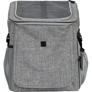 Inklusive Schulterriemen, um den Hund zu transportieren, wenn man das Fahrrad abstellt. Zusätzlich besitzt die Tasche einen Netzeinsatz für eine gute Luftzirkulation und reflektierende Elemente sollen den Hund bei Dunkelheit schützen. Durch das große Sichtfenster kann der Hund während der Fahrt Ausschau halten.