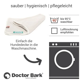 Ihren Hund verwöhnen Sie mit dieser kuscheligen Decke, die bei 95°C gewaschen werden kann und besonders weich und warm ist. Egal, ob als zusätzlicher Platz auf dem Lieblingsplatz oder auf dem Sofa – mit dieser Decke sorgen Sie für noch mehr Komfort für Ihren Hund. Wie alle Produkte von Doctor Bark, kann auch die Kuschel-Fleece-Decke bei 95°C gewaschen werden. Wir haben das weichste und hochwertigste Fleece für diese kuschelige Decke ausgewählt, damit Ihr Hund sich gemütlich ausruhen und schlafen kann. Die Decke ist farblich abgesetzt und mit einem Einfassband veredelt, was ihr einen hochwertigen Abschluss verleiht. Dank der verschiedenen Größen passt die Decke problemlos in eine 5 kg Waschmaschine. Größe: M: ca. 100 x 70 x 1 cm, L: ca. 120 x 90 x 1 cm, XL: ca. 140 x 100 x 1 cm.
