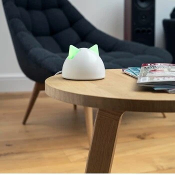Mit einem Sure Petcare Hub können Sie bis zu 10 verschiedene SureFeed/SureFlap Connect Produkte anschlieĂen und verwalten. Die LED-„Ohren“ des Hubs sind dimmbar.