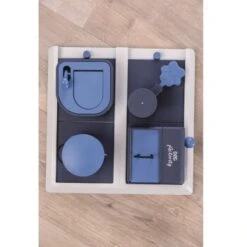 Die Poker Box 2 verbindet Spaß und Strategie. Die vier Elemente können variabel auf dem Spielbrett platziert werden und lassen sich auf unterschiedliche Weise öffnen. Mit ein bisschen Übung gelingt es dem Hund mit Schlaufe, Hebel, Kicker oder Pedal an die versteckten Leckerlies zu gelangen. Tipps und Tricks für ein optimales Training bietet das beiliegende Übungsheft.